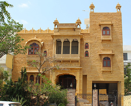 Mr. Sanjay is a businessman while Mrs. Kamini has been working in the social sector since 30 years and is successfully running her own NGO for underprivileged children and women where volunteers from all across the globe come to assist. Constructed by Jaisalmeri artisans in the yellow sand stone imported straight from there, the Palatial Villa is a sight to sore eyes and a traveler's delight. Enjoy a modern mix of heritage and chic, with us and have the most cozy stay in the Pink City. Lahariya and Bandhani are bespoke heritage rooms while machaan is perfect for backpackers.